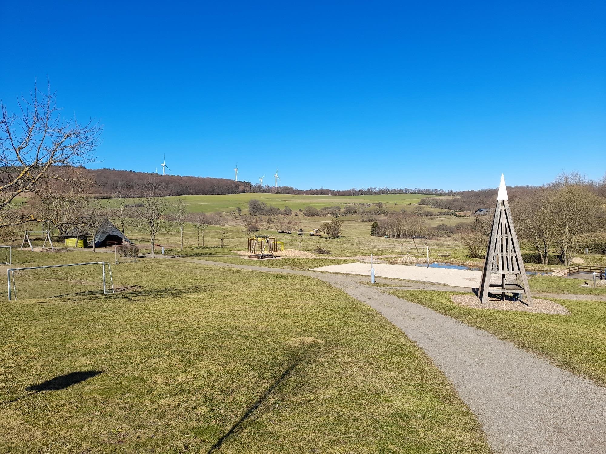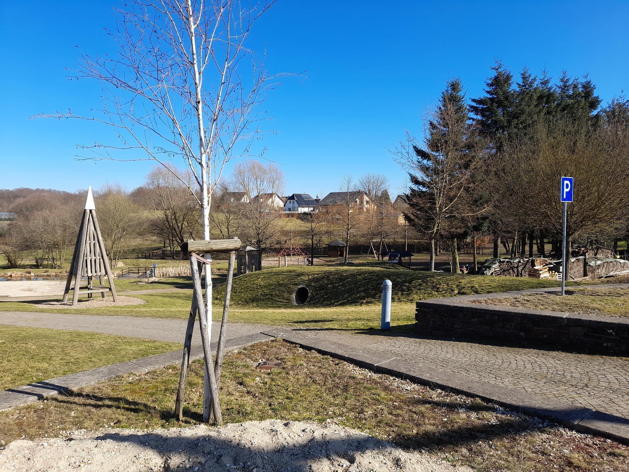 Very spacious area with various areas. Partly traditional playground equipment (carousel, slide, climbing tower, nest swing, swing, ropeway), partly also for older children (skater track, beach volleyball, small soccer field, basketball hoop). Also a bail pump serving a small stream and a small pond. There are several tables and benches also covered, and plenty of lawn for the picnic blanket. Suitable for children aged 1-16 years.