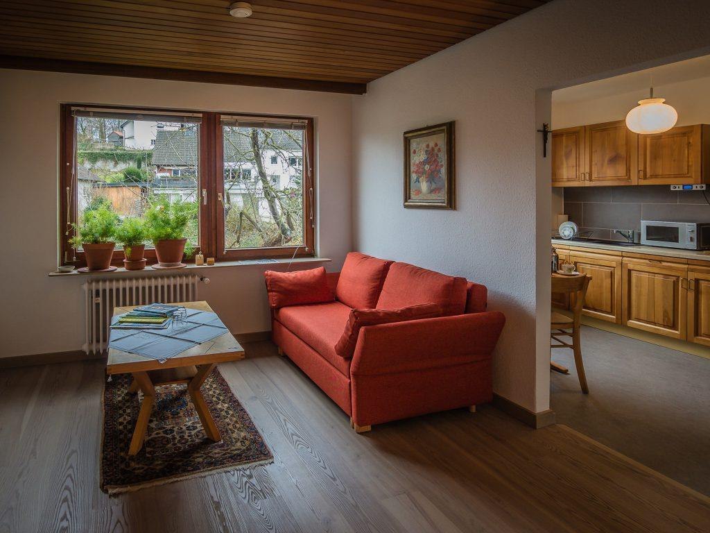 The 2019 newly furnished non-smoking holiday apartment on the ground floor of a single-family house offers space for 2 people and can be booked from 2 nights. The apartment consists of a kitchen with dining area, living room, double bedroom and bathroom with shower. Outside there is a small terrace with seating. Andernach city center is within walking distance. It is a 12-minute walk from the house to the market square and 13 minutes to the Rhine. Hikes can start right at the house, it takes about 20 minutes to reach the Krahnenberg. There you have a wonderful view over Andernach and the Middle Rhine Valley. A wide variety of hikes can be undertaken from the Krahnenberg, from the small loop in the Andernacher Stadtwald to extensive tours on the 240 km long Rheinhöhenweg.