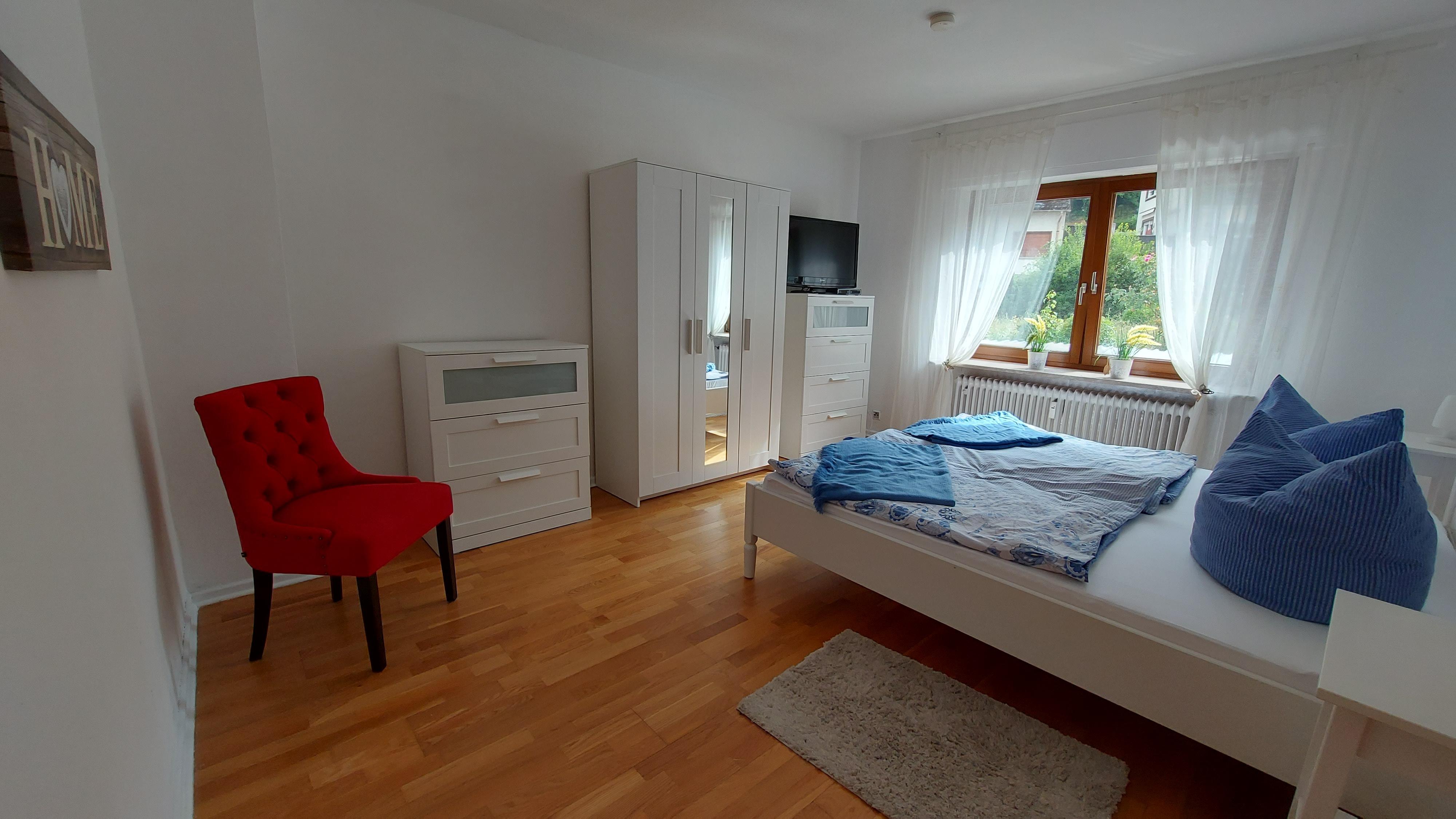 Welcome to my holiday flat herRHEINspaziert in Oberwesel - town of towers and wine. The furnishings on 80 sqm offer space for 2 - 5 people. 2 separate bedrooms, 1 living room with dining area and a fully equipped kitchen invite you to stay. Bathroom with shower and WC. Bed linen and towels included. Bicycles can be safely stored in the garage. Flat-screen TVs are available in the living room and one bedroom. The apartment has a balcony with a view of the Schönburg.