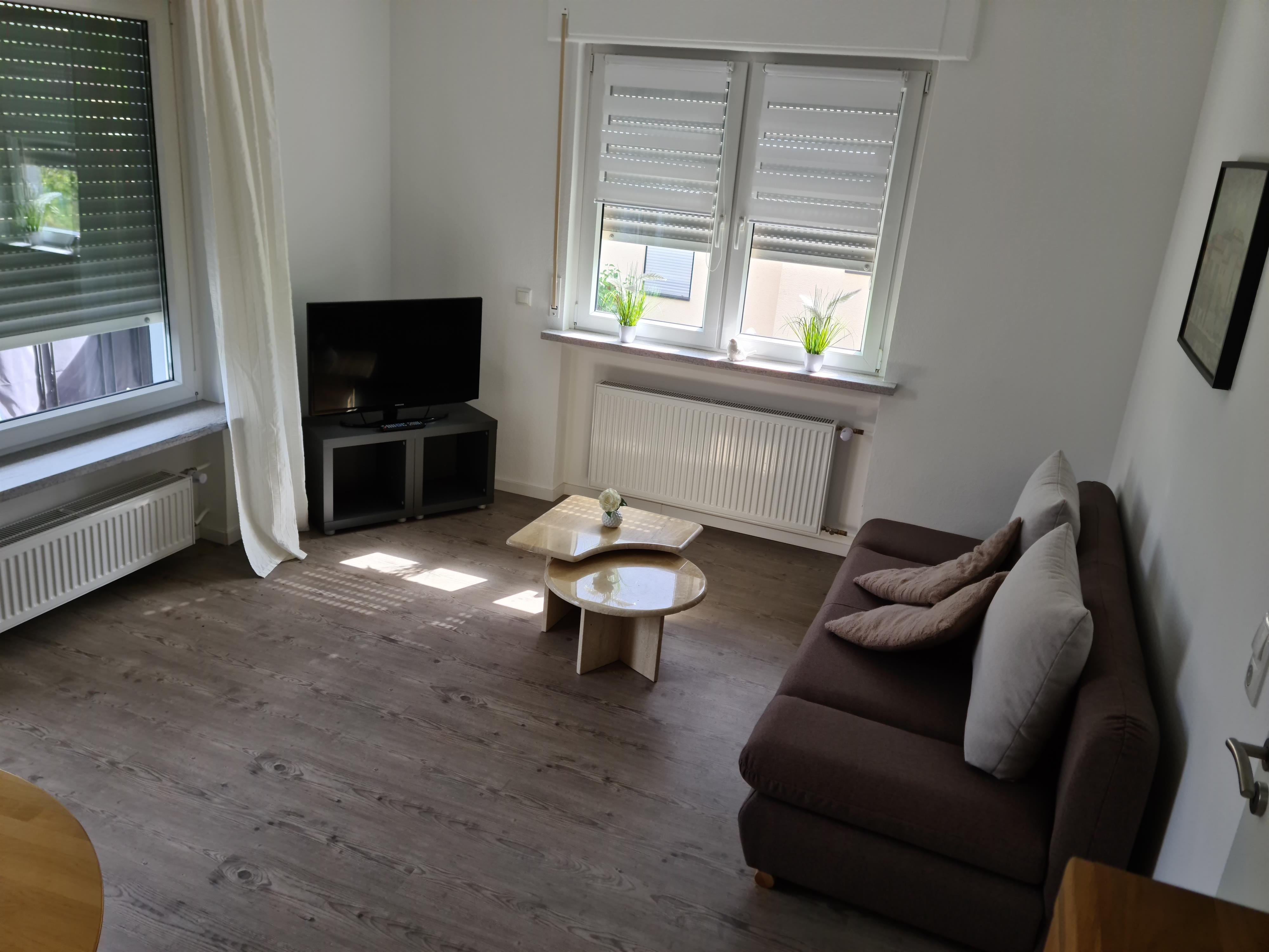 Our comfortable apartment is furnished in a modern style. There is a living room, a sepeerate bedroom (for 2 persons), kitchen, bathroom and balcony. The apartment is located on the first floor of our two family house, at the outskirts of the village of Hattenheim, directly at the vineyards