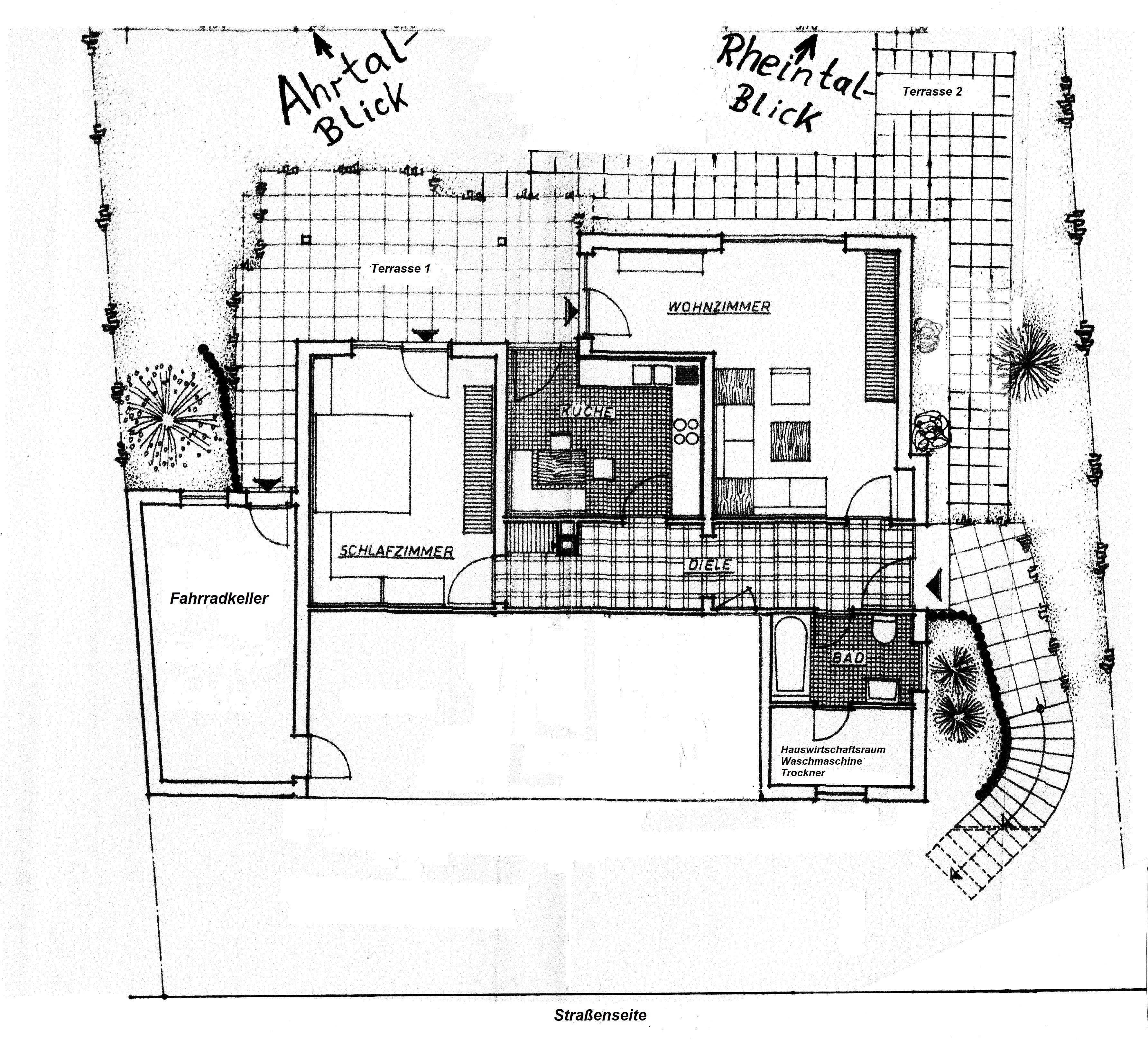 Beautiful and lovingly furnished vacation apartment in a wonderful panoramic location. Separate entrance. In a spacious living room, a spacious bedroom, the kitchen with dining area, the bathroom with tub/shower, we offer you everything so that you experience a relaxing and comfortable vacation. Own room with washing machine and dryer. Bicycle cellar. Safe. From the terrace you have a great view over the Ahr and Rhine valley. The apartment is an ideal starting point for hikes and excursions.