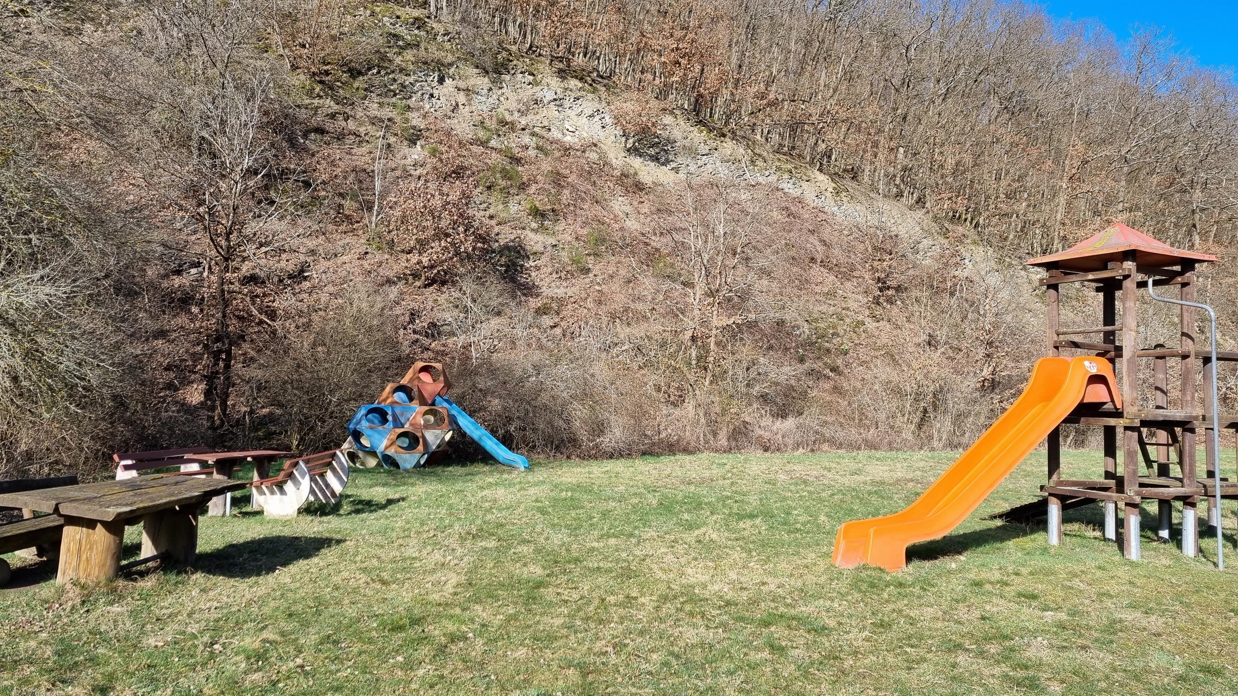 In front of the hut, there is a large meadow with a few play equipment and a wonderful view of the Rhine.