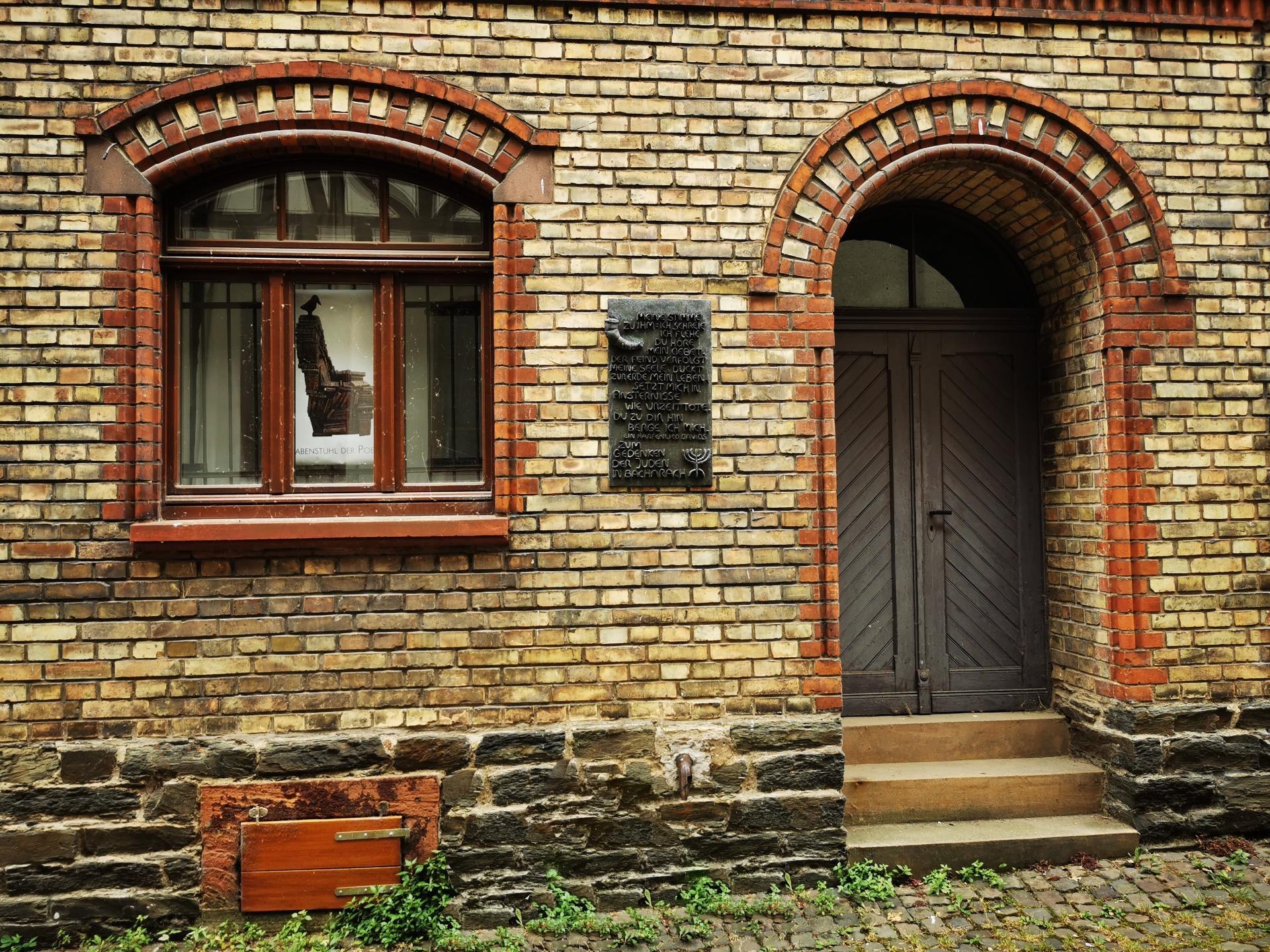 Already in the first half of the 12th century Jews lived in the city. Persecutions and pogroms have been taking place since the 13th century. As a result of the alleged ritual murder of the boy Werner in 1283, 26 Jews were murdered in the city. Other Jews had fled the city and returned only later. Around 1316, Jewish inhabitants in the town can again be traced. During the persecution of the Jews in the summer of 1337 and during the plague in 1348/49, Jewish life in the town was once again wiped out. Until the persecution of the Jews from the Electoral Palatinate in 1390, several Jews who had moved in from other cities are mentioned in the city. A Jewish community was founded in Bacharach in the 1860s. At that time the Jewish people living in Niederheimbach and Oberheimbach also belonged to the community. Of the Jewish people born in Bacharach and/or living in the village for a longer period of time, 17 people died during the Nazi era, eight people in Niederheimbach. To commemorate the murdered Jews, "Stolpersteine" were laid at Langstraße 43 and 25, Bauerstraße 5 and Oberstraße 3. A further commemorative plaque is located in Untergasse 26. The Israelite fraternity community of Bacharach operated, among other things, the Jewish cemetery in Kaub, which was used until the middle of the 19th century. Jewish cemeteries were then established in Oberheimbach and Bacharach.