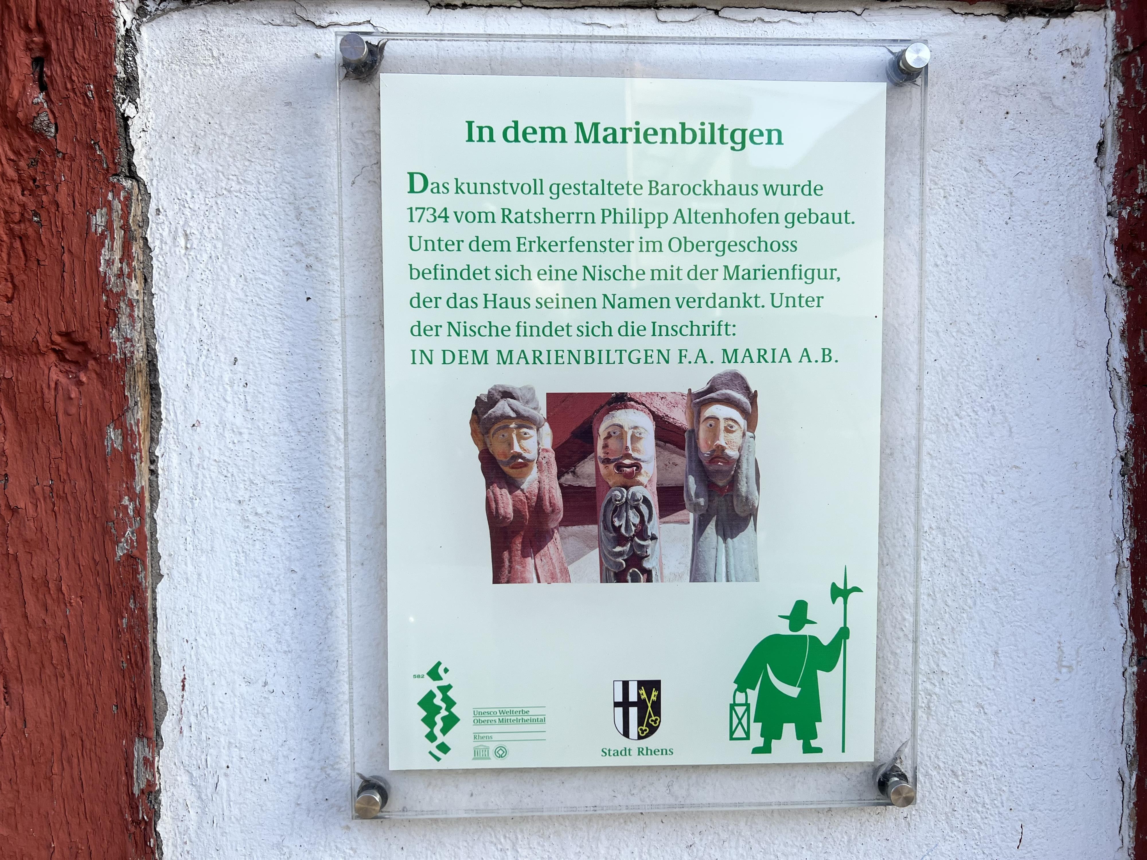 The house Marienbiltgen also called "Zum Marienbildchen" is a stately home and was built in 1734 by the councilman Philipp Altenhofen (1686-1770).