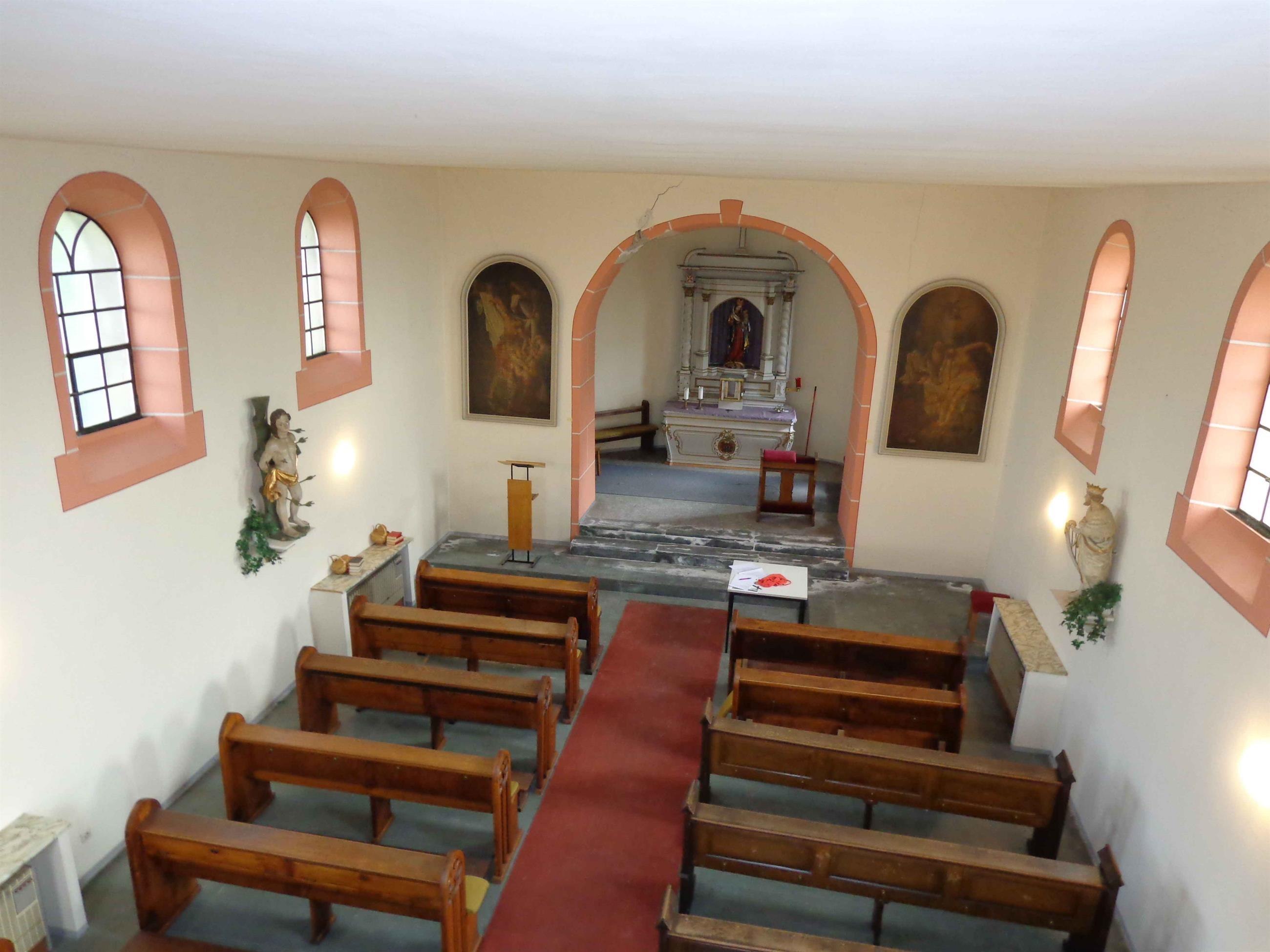 Today, the chapel is equipped in Baroque style. The altar once stood in the Wenzel Chapel. Two altar paintings date from 1816 and previously hung in the parish church of St. Martin. The figures of saints Wendelinus, King David, and Sebastian are also Baroque, while the neo-Gothic Madonna is a copy of the Hallgarten Madonna crafted by Caspar Weis.