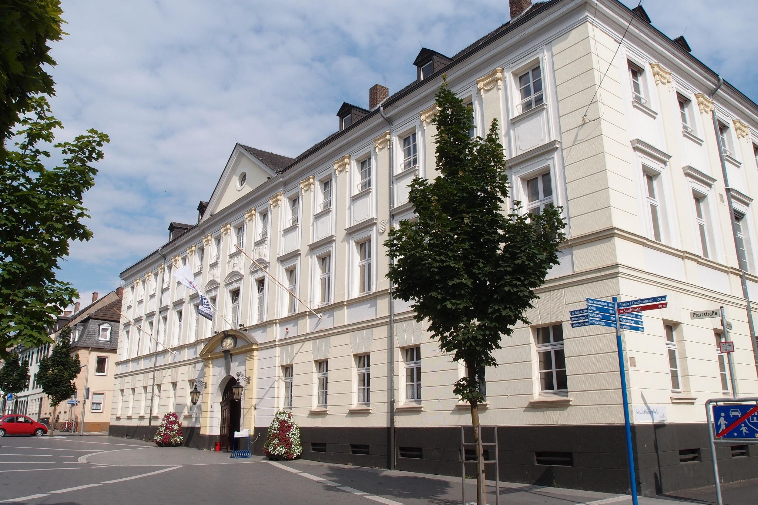 A brother of the reigning Count Alexander zu Wied, the later "General Wied", had the largest building in the town constructed on Pfarrstraße after 1740 and donated it to the town in 1765 for the care of the poor and orphans. However, the "Gentry House" proved to be a financial failure as a social institution, and the town fathers leased it out in 1773 and sold it in 1784 to the company Remy & Barensfeld, which processed black metal waste from the Rasselstein factory into enamelware. In 1871, the town received the house along with the company’s land back as an inheritance from the last heir of the now-defunct company. In 1877, the city administration moved in here, sharing the building with the Higher Daughters' School until 1912. It has retained the appearance it had after the renovations and modernizations done in accordance with the tastes of the time.