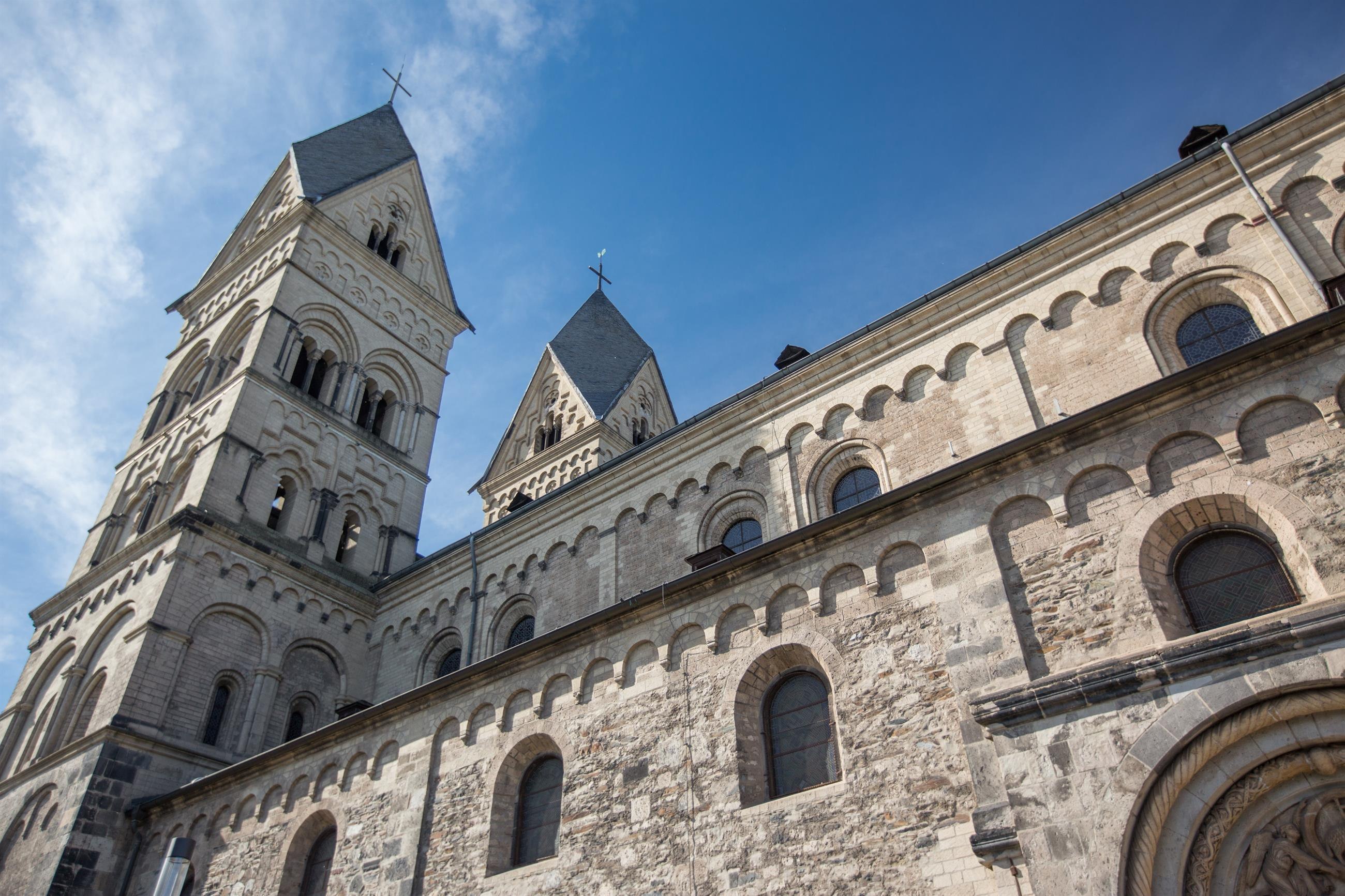 It is not a cathedral in the ecclesiastical sense, and yet the Catholic parish church of the Assumption of Mary is one of the most beautiful Romanesque church buildings on the Middle Rhine due to its extraordinary wealth of ornamental forms and furnishings. Its four towers tower above the three-aisled basilica with its galleries and, together with the neighboring round tower, form a characteristic feature of the townscape for the whole of Andernach.