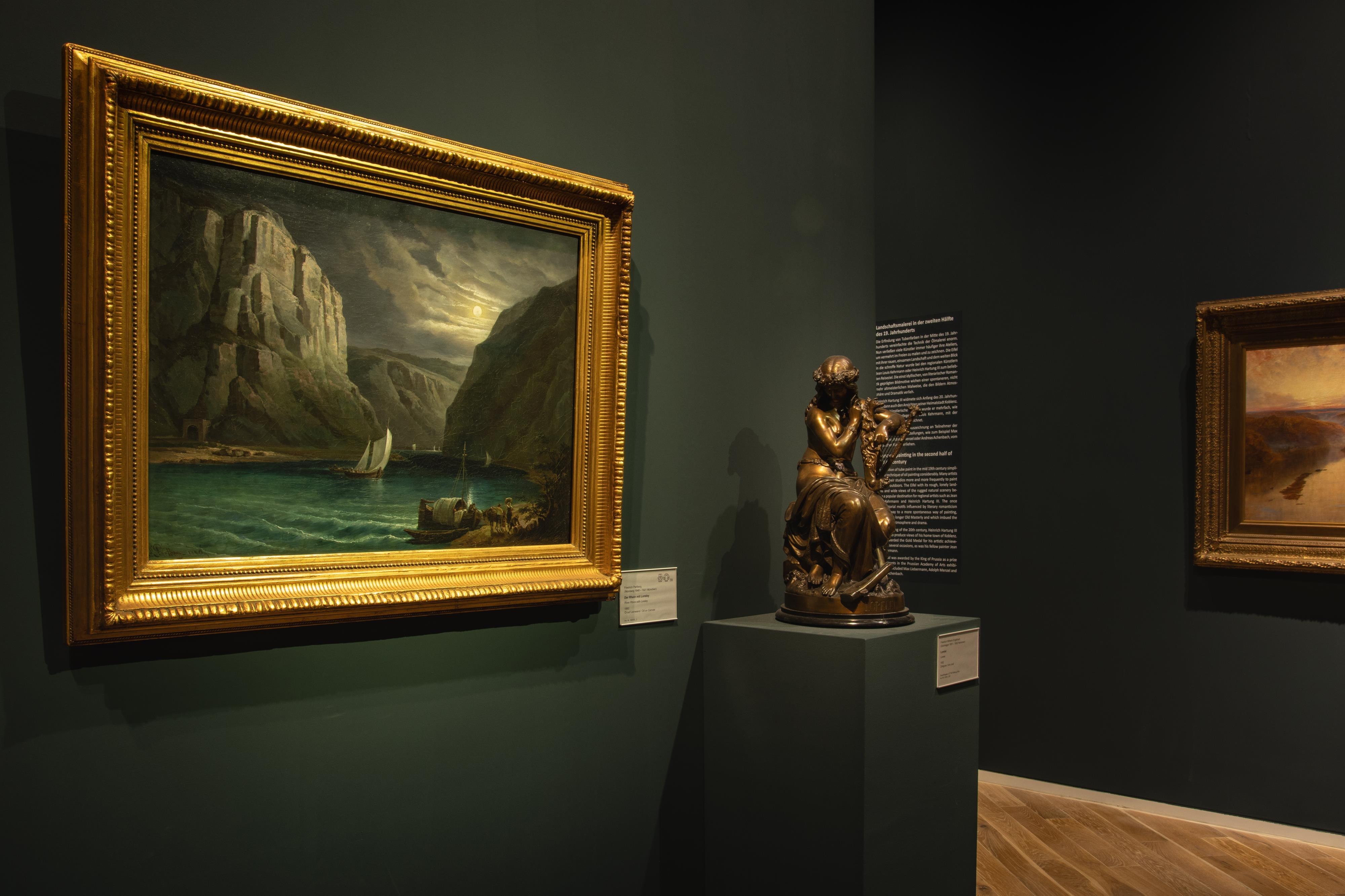 The permanent exhibition of approximately 1900 m² at the Mittelrhein Museum focuses on the painting collection, as well as sculptures and decorative arts. In chronological order, the exhibition halls lead from medieval sculpture through the painting of the Middle Ages, Baroque, Classicism, and Romanticism to representatives of the Düsseldorf School, Classical Modernism, and contemporary positions.