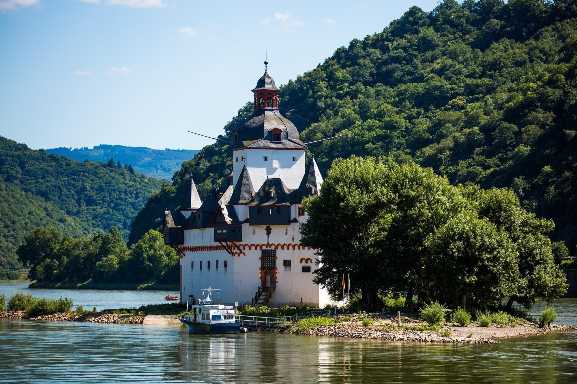 Standing in the middle of the river, the fortress is only accessible by ferry. In 1327, the Pfalzgraf and later Emperor Ludwig IV erected a five-sided keep on the small Rhine island as the first part of the fortification - much to the dismay of the bishops of the time and even the Pope, who were concerned about the church's lucrative dominance in collecting tolls. With the construction of the ring wall and walkways starting in 1340, the resilience of Pfalzgrafenstein was significantly increased. In 1504, it even survived a 39-day siege during the Bavarian-Palatinate War of Succession unscathed.