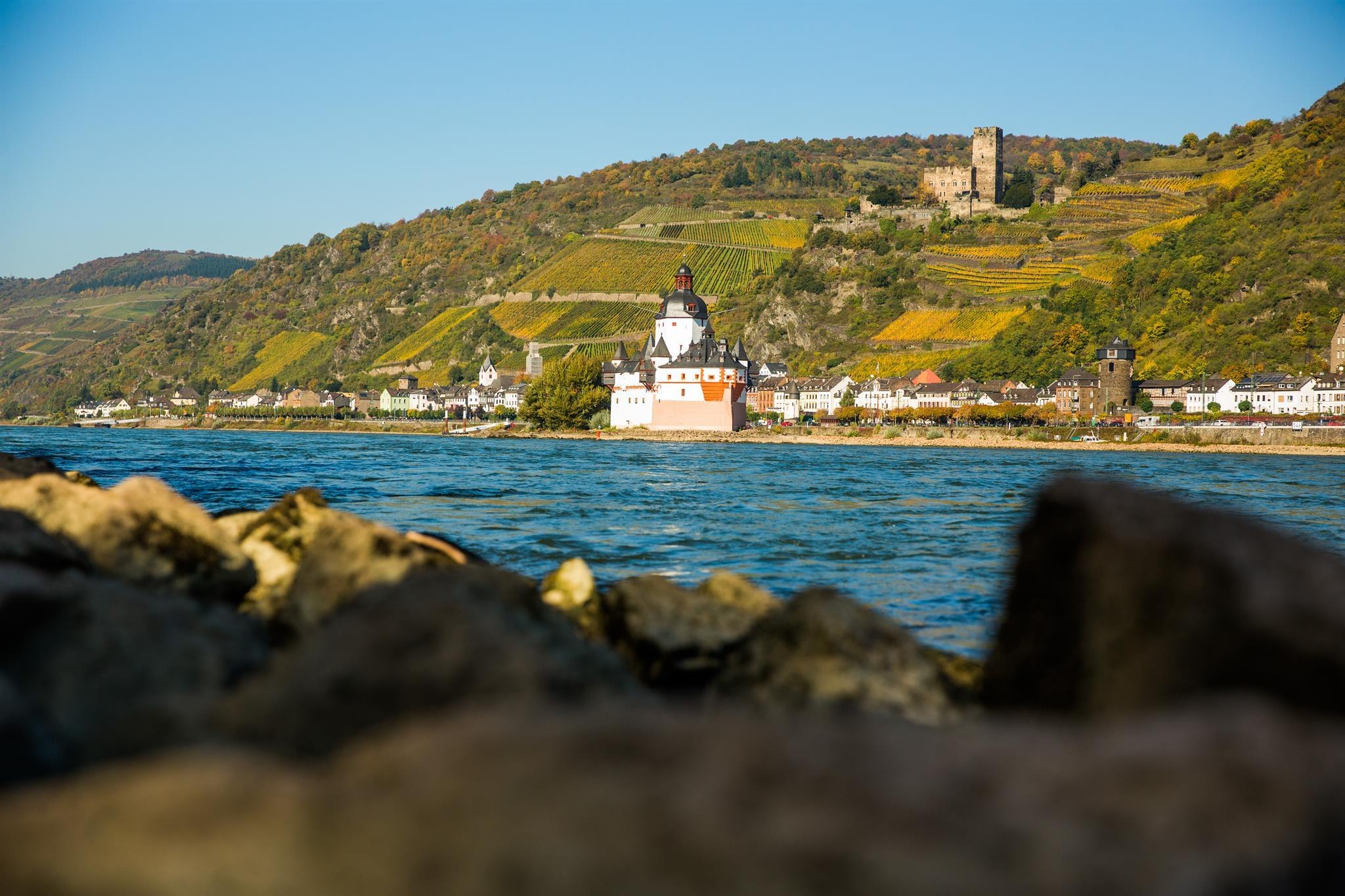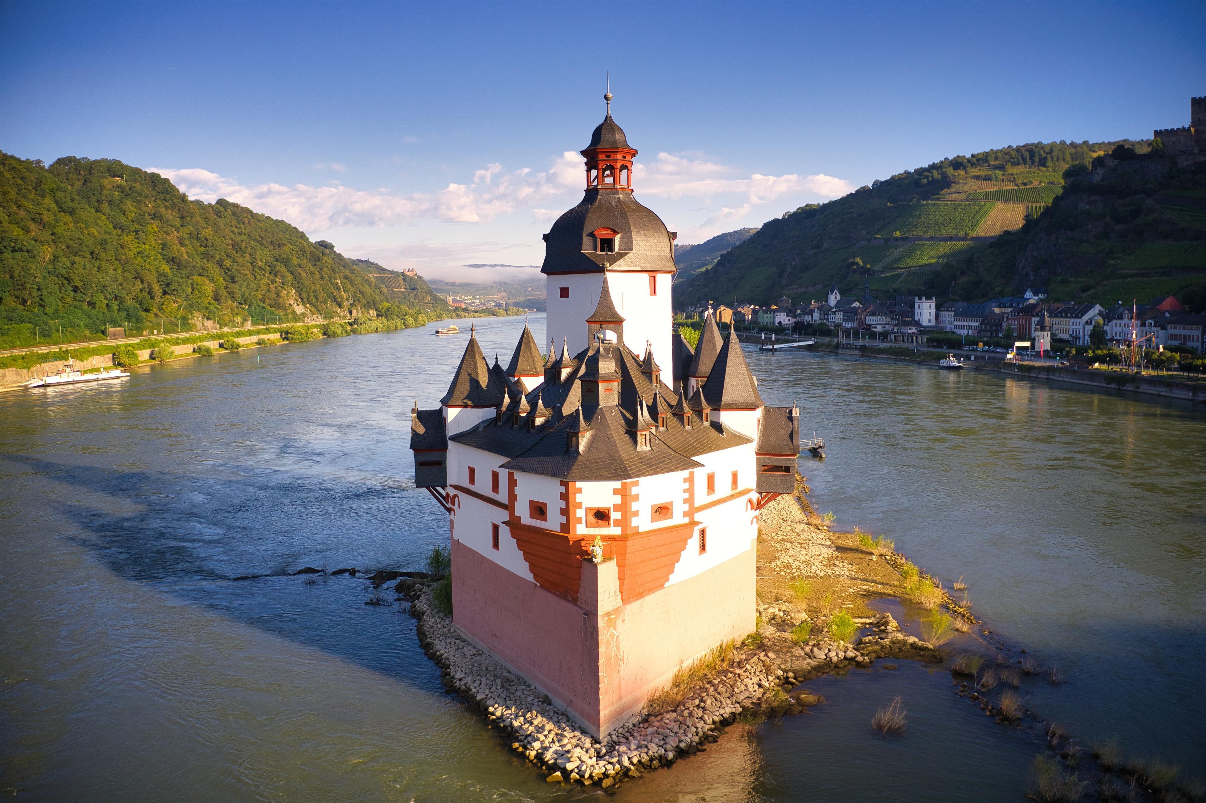 The Pfalzgrafenstein rises like a stone ship in the Rhine in front of Kaub.