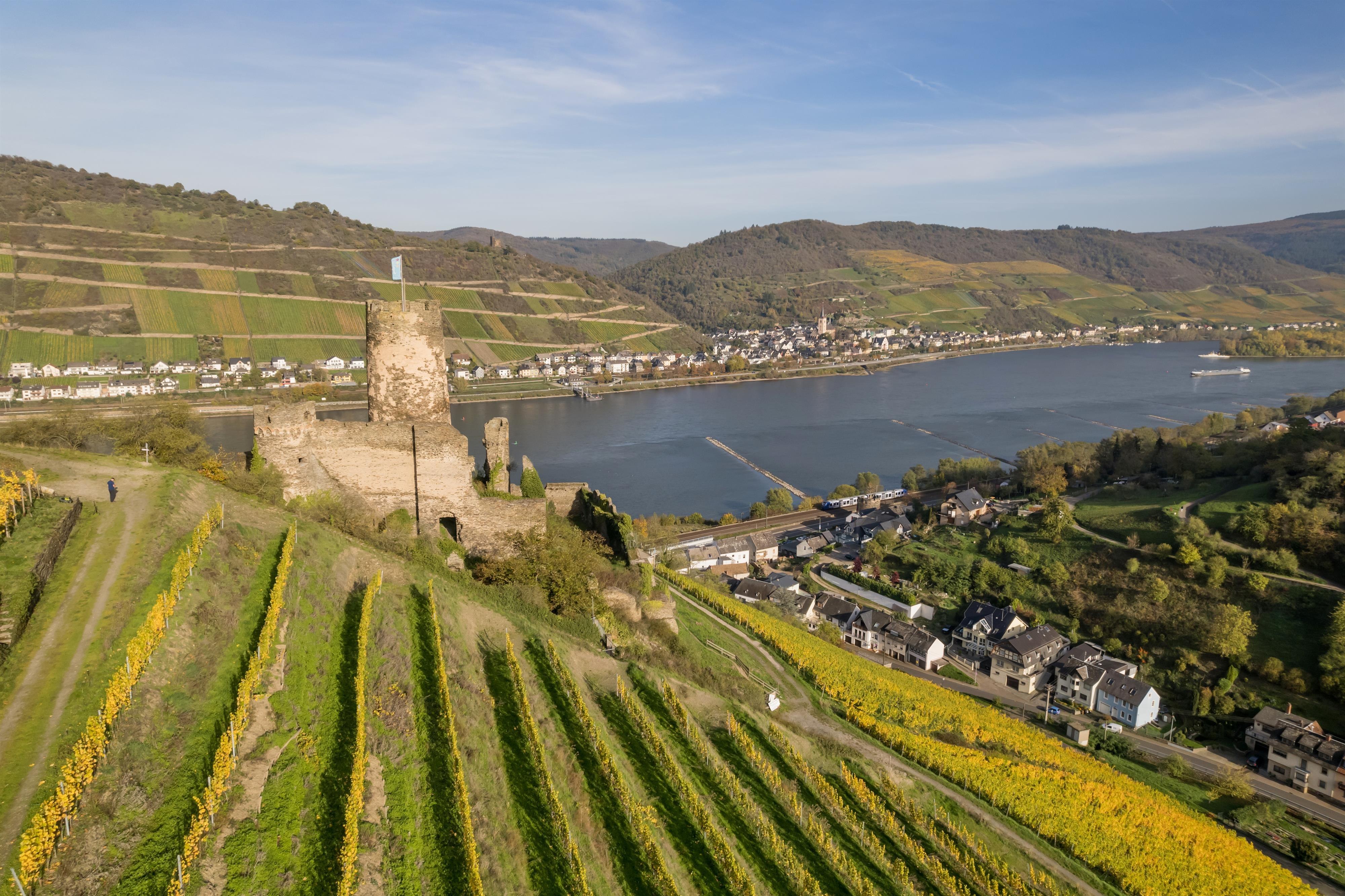 The Fürstenberg ruins are located above the village of Rheindiebach in the midst of picturesque vineyards.