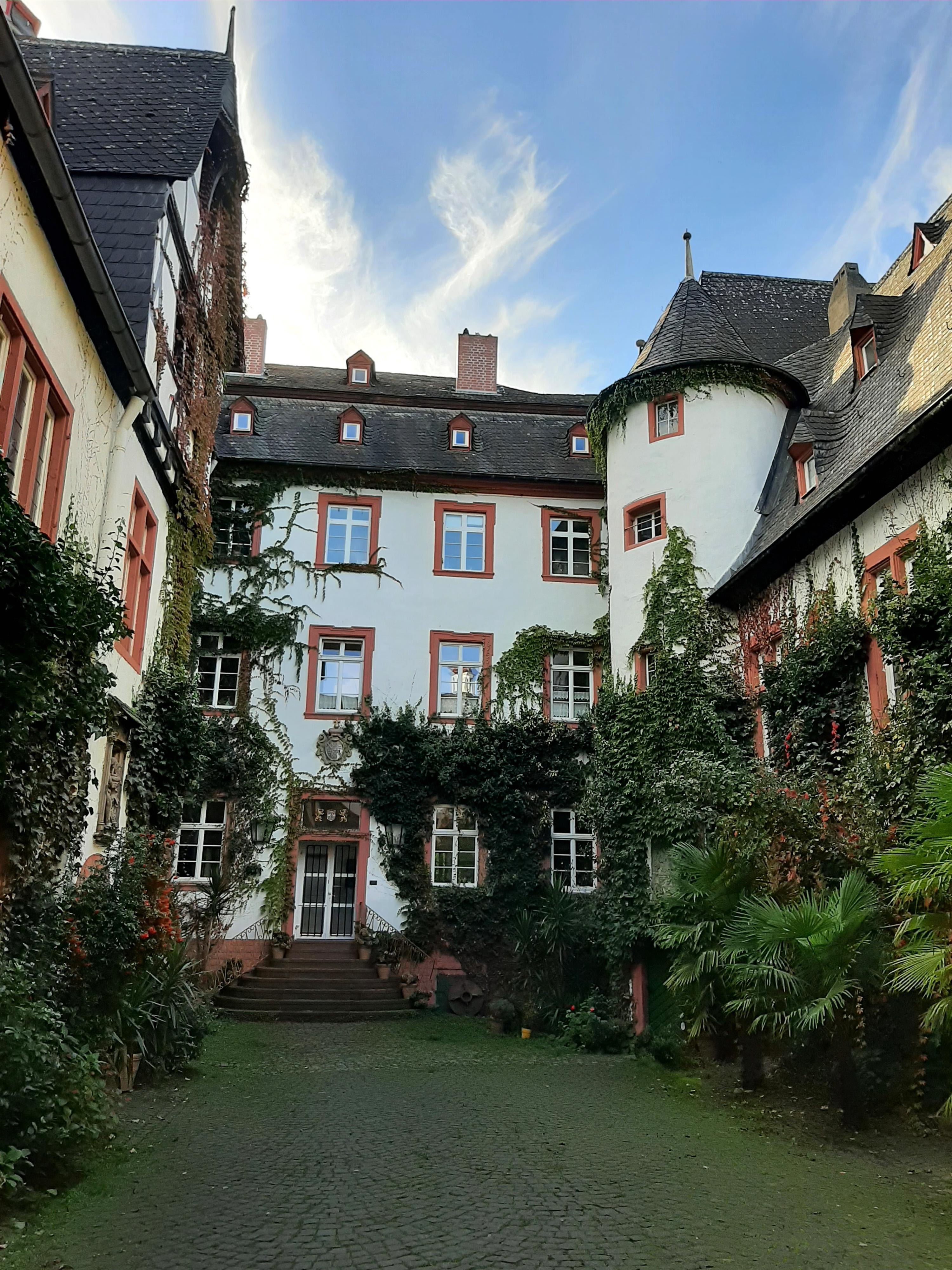 The water castle was never destroyed, but it was altered by additions and renovations until the end of its affiliation with Kurmainz in 1803. Thus, in the 14th century, the northwest wing was added, followed by the present southeast wing in 1497. Between 1719 and 1721, the then existing gap on the Rhine side between the medieval residential tower and the keep was closed with a three-story central building in the style of the Baroque.