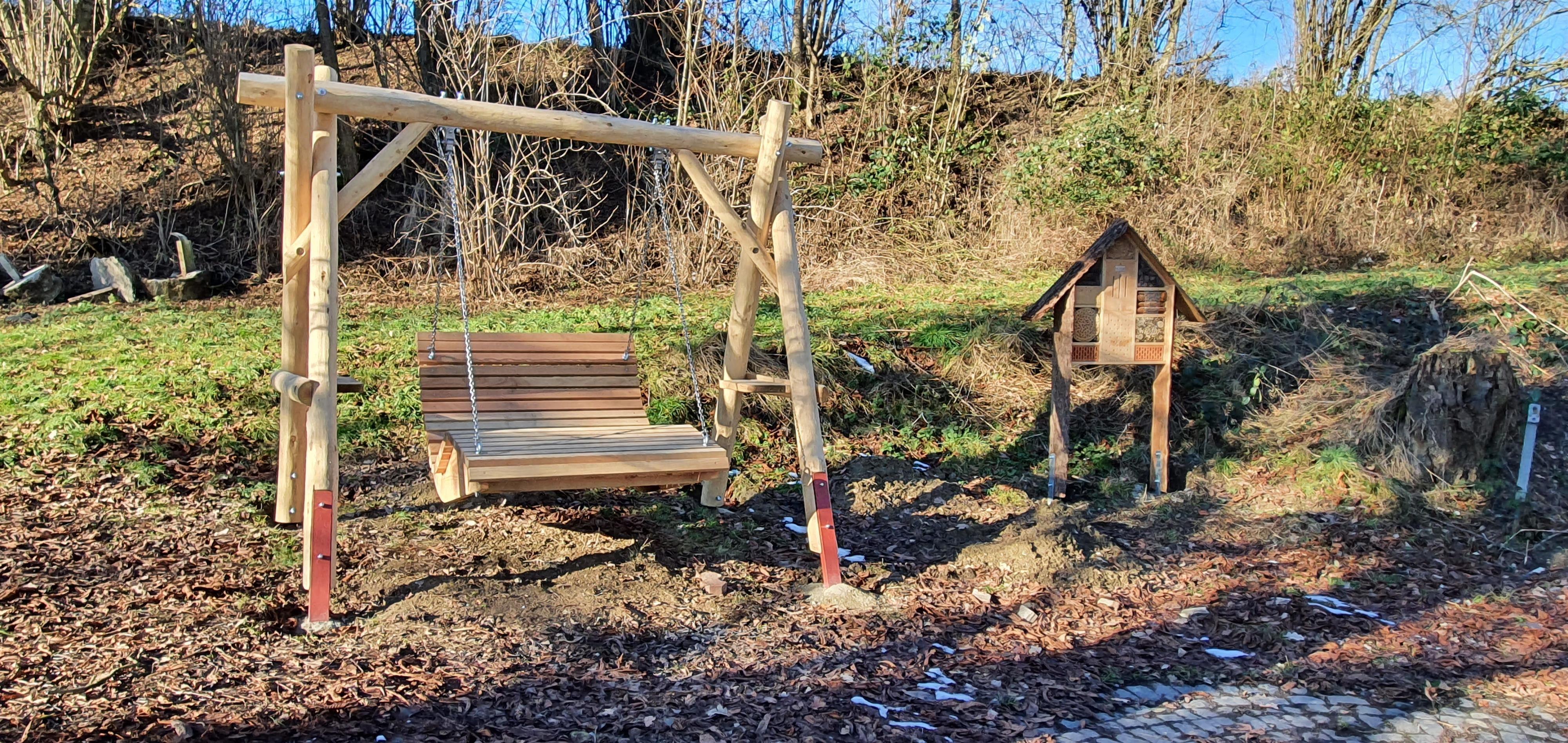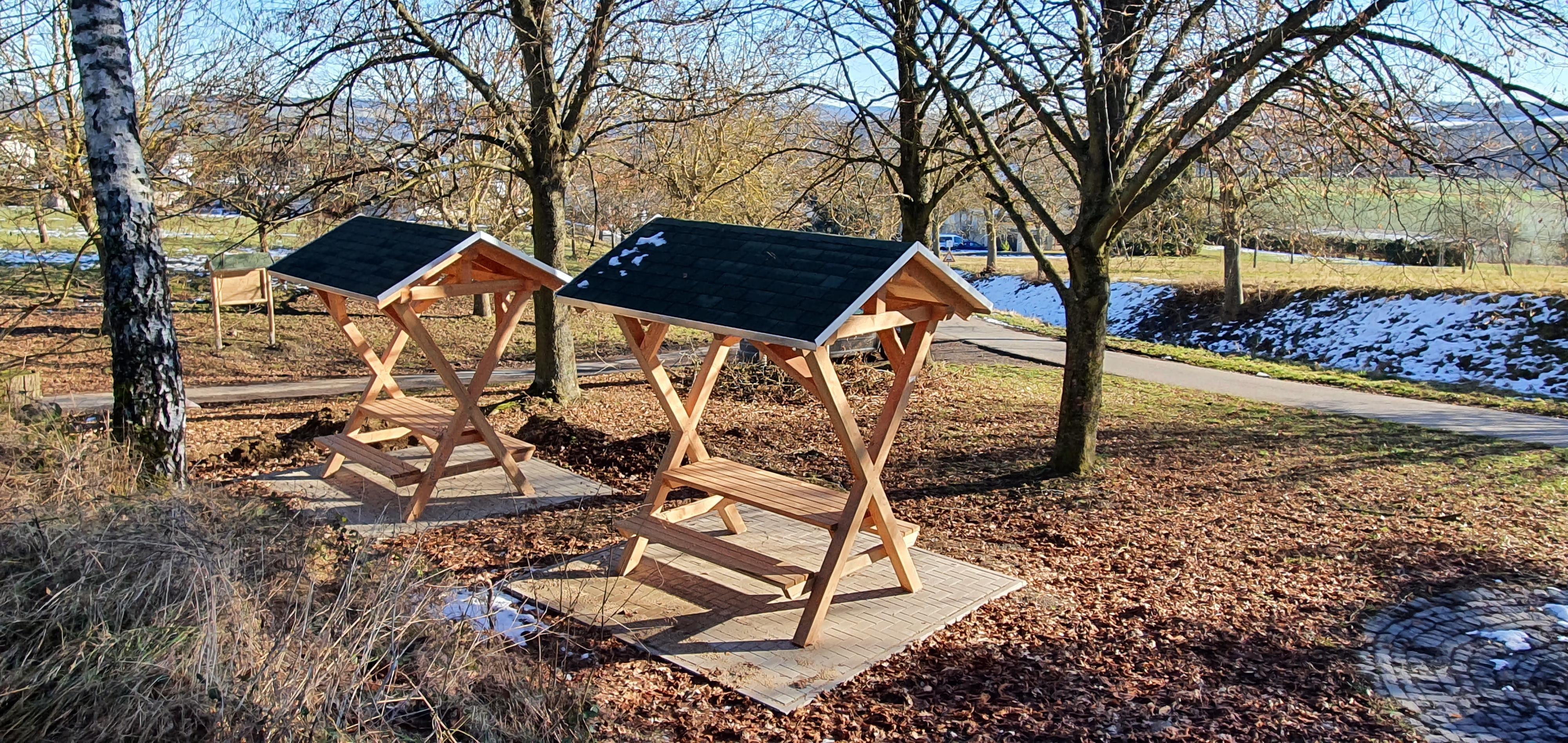 A rest area with plenty of seating above Damscheid at the new Traumschleifchen and directly on the bike path connection from Hunsrück to Mittelrhein.