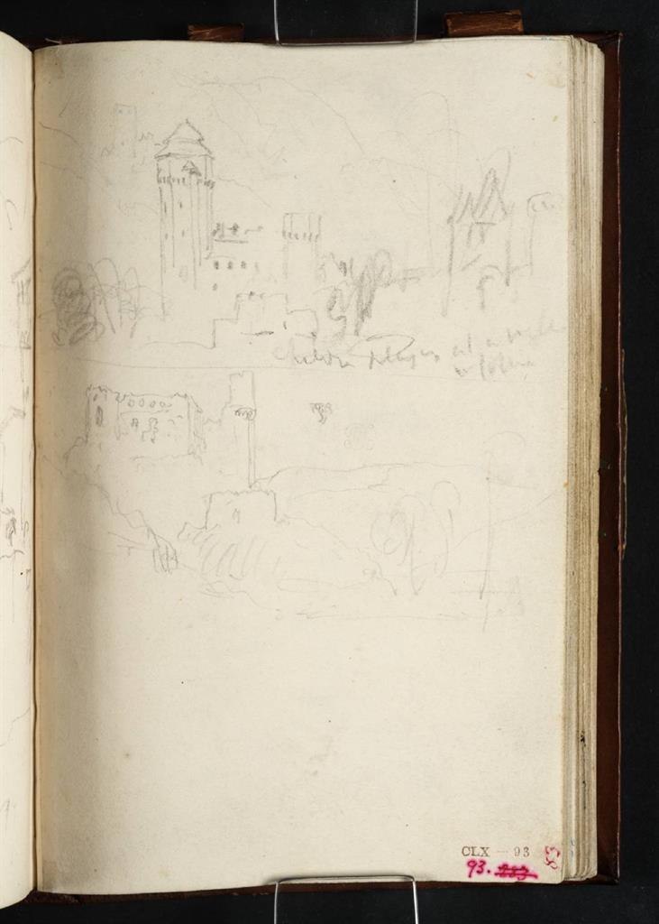 After Turner crossed over to Lahnstein from the left bank of the Rhine, he sketched Castle Stolzenfels again, this time looking upstream. The foreground shows a tranquil scene that gives insight into life by the river. Everyday situations like this, alongside natural landscapes, held a particular allure for Turner. The middle ground is dominated by the Martinsburg, built around 1300, with its powerful hexagonal tower featuring an elaborate pointed arch frieze. Stolzenfels Castle is visible in the background, as is the parish church of St. Martin. This is one of the few architecturally rich images that captures many details and served as a finished template for engravers. The Martinsburg is currently privately owned and can only be viewed from the outside. Stolzenfels Castle is now owned by the state of Rhineland-Palatinate and can be visited.
