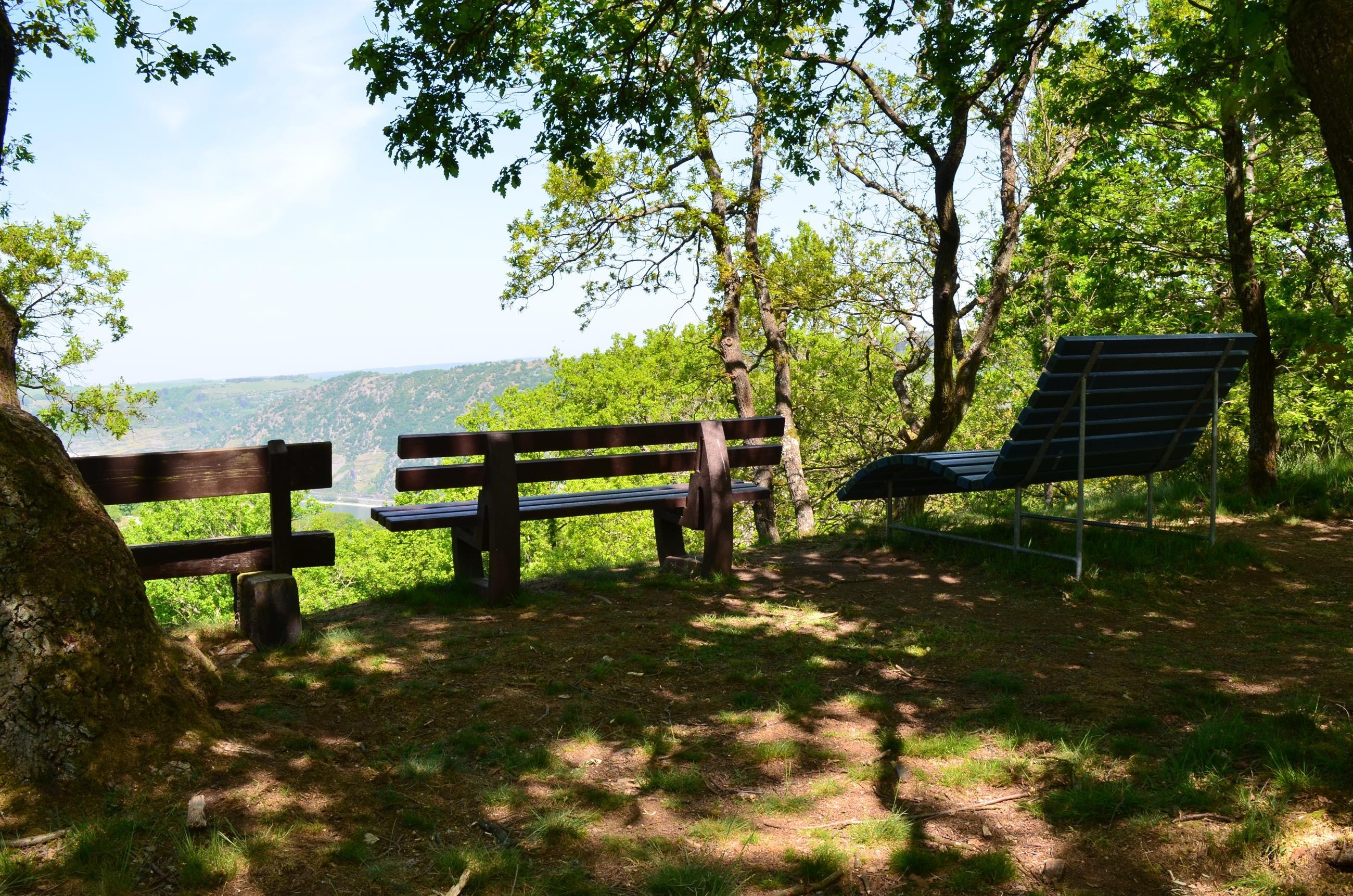 Prachtige rustplaats met verschillende zitmogelijkheden, een bank en een tafelgroep. Grandioos ver uitzicht in de Rijnvallei. Parkeren bij het buurthuis in Langscheid, op ca. 1 km afstand. Direct gelegen aan de droomlus "Pfalzblick".