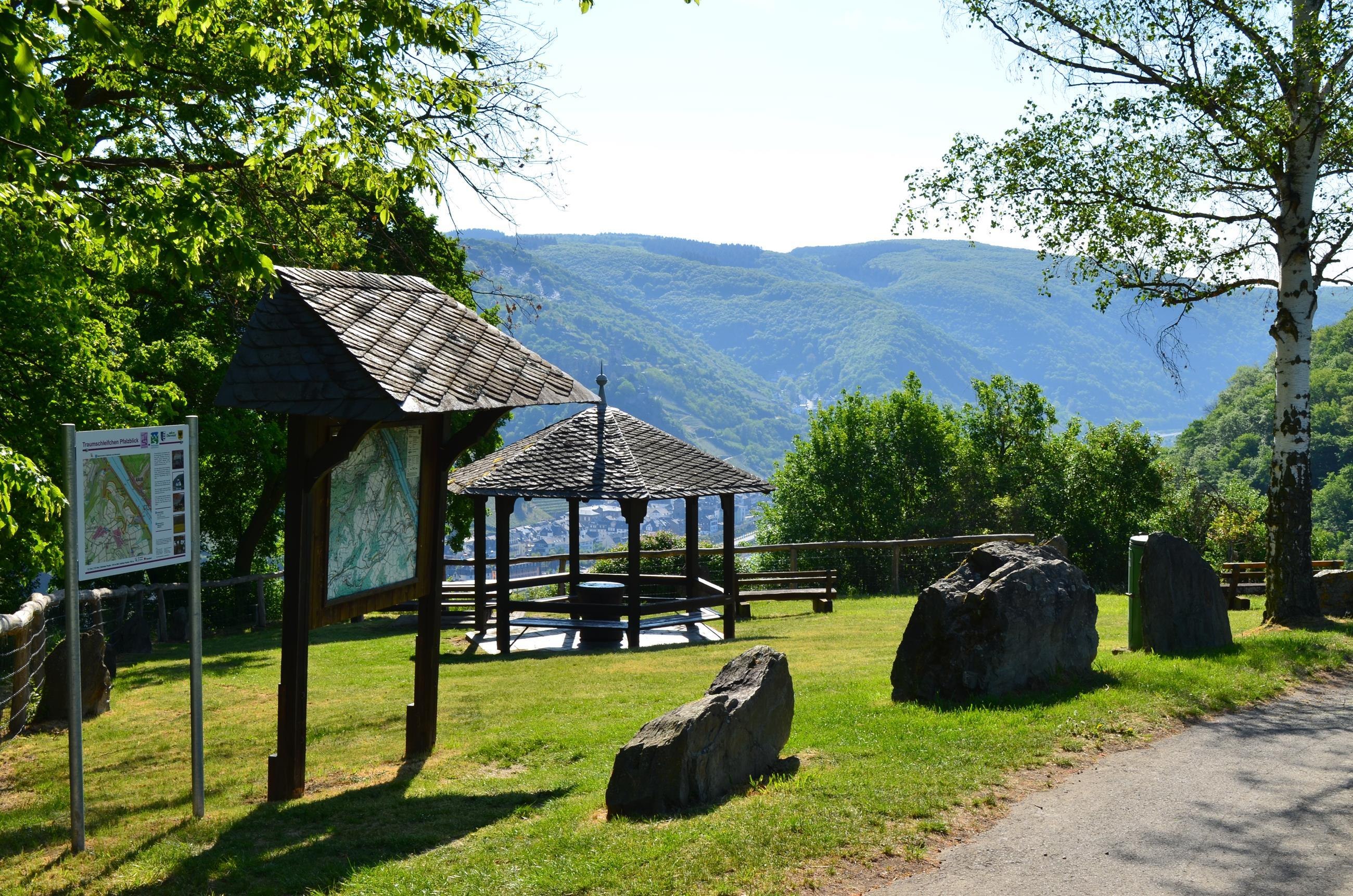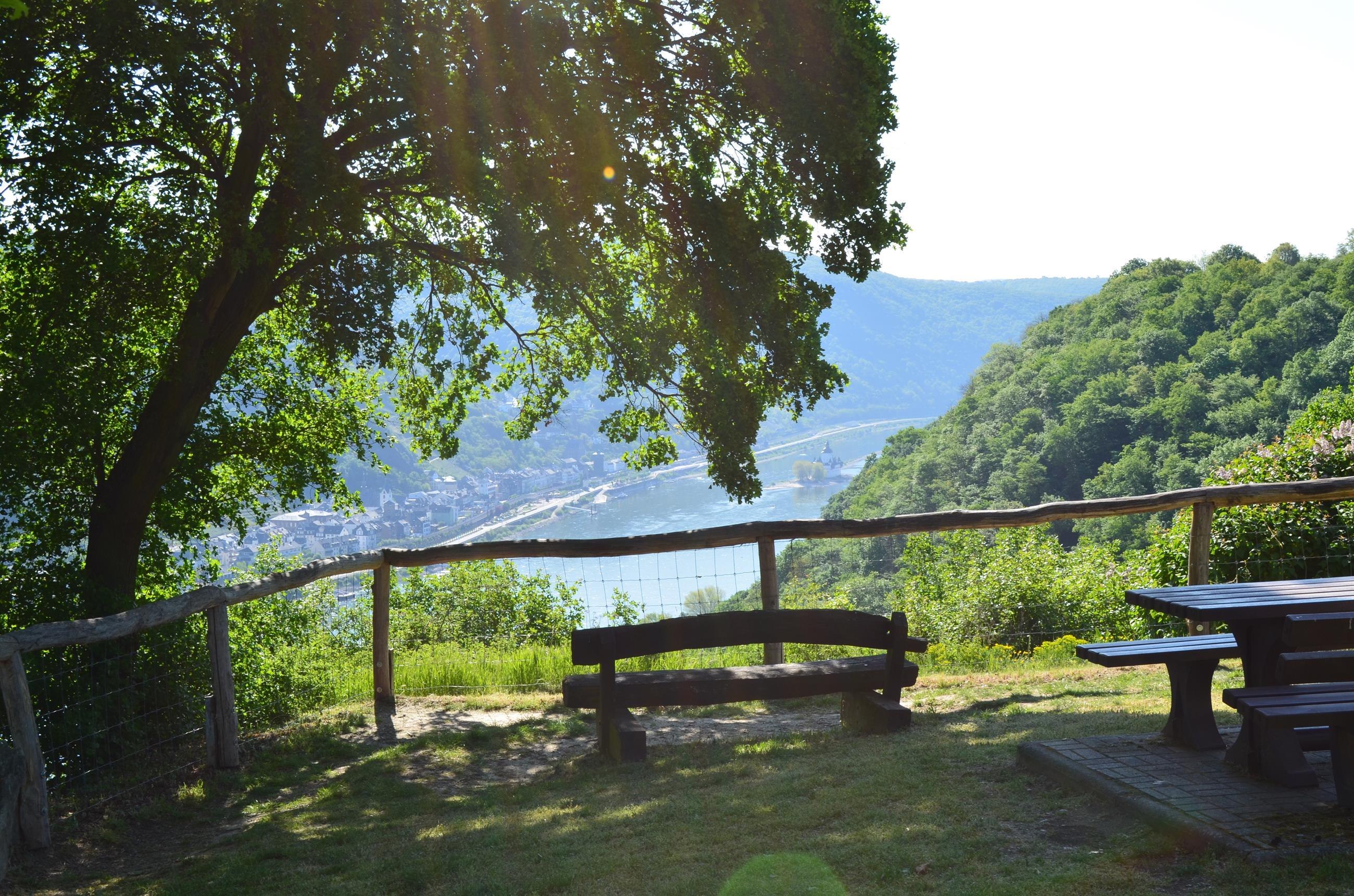 Prachtige rustplaats met enkele zitplaatsen, tafels en overdekt paviljoen. Prachtig uitzicht op de Rijn, kasteel Gutenfels met Kaub en kasteel Pfalzgrafenstein in de Rijn. Grote parkeerplaats vanaf de K 89 op ongeveer 50 m afstand. Direct gelegen aan de RheinBurgenWeg. Ook een startmogelijkheid van de droomlus "Pfalzblick".
