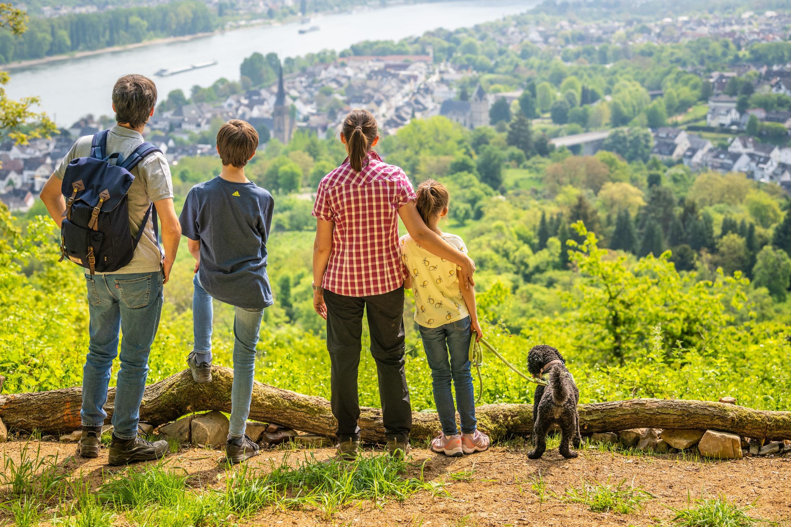 Het uitzichtpunt "Panoramablick Lützelforst" met een zit-statafel en een fantastisch uitzicht op de Königsstuhl, op Rhens, in het Rheinstal en de Marksburg bevindt zich aan de premium wandelroute "Traumpfad Wolfsdelle" in de directe nabijheid van de zendmast.