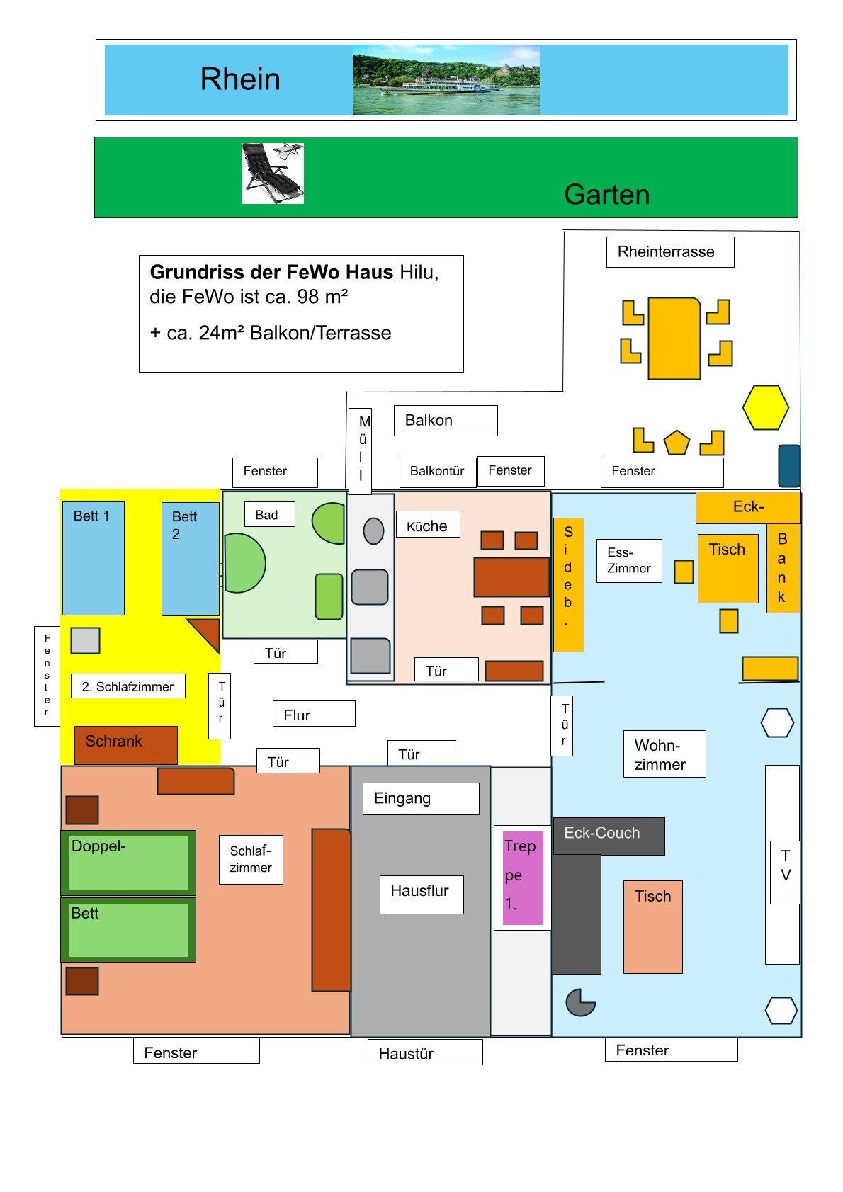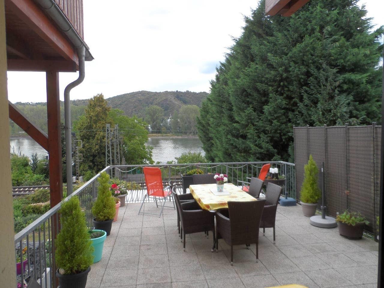 Mooie, ruime en gezellige vakantiewoning, centraal gelegen in het Werelderfgoed Boven-Middel-Rijnvallei, direct aan de Rijn met een groot Rijnterras en hoogwaardige voorzieningen. Geniet vanaf het grote Rijnterras of in de gedeelde tuin, uitgerust met zitmeubels en ligstoelen, van het directe uitzicht op de Rijn. De woning bevindt zich op de begane grond van ons huis, heeft een oppervlakte van 98 m² en is opgedeeld in een ruime woonkamer met eetkamer, keuken met toegang tot het balkon, twee slaapkamers en een badkamer. Het is geschikt voor vier volwassenen of twee volwassenen en kinderen. De woning is niet rolstoeltoegankelijk! De kleine stad Rhens biedt naast bakkerijen en restaurants ook winkelmogelijkheden. Tal van wandel- en fietspaden beginnen in de directe nabijheid van de vakantiewoning. Ook een aanlegplaats voor boten bereikt u binnen 10 minuten lopen.