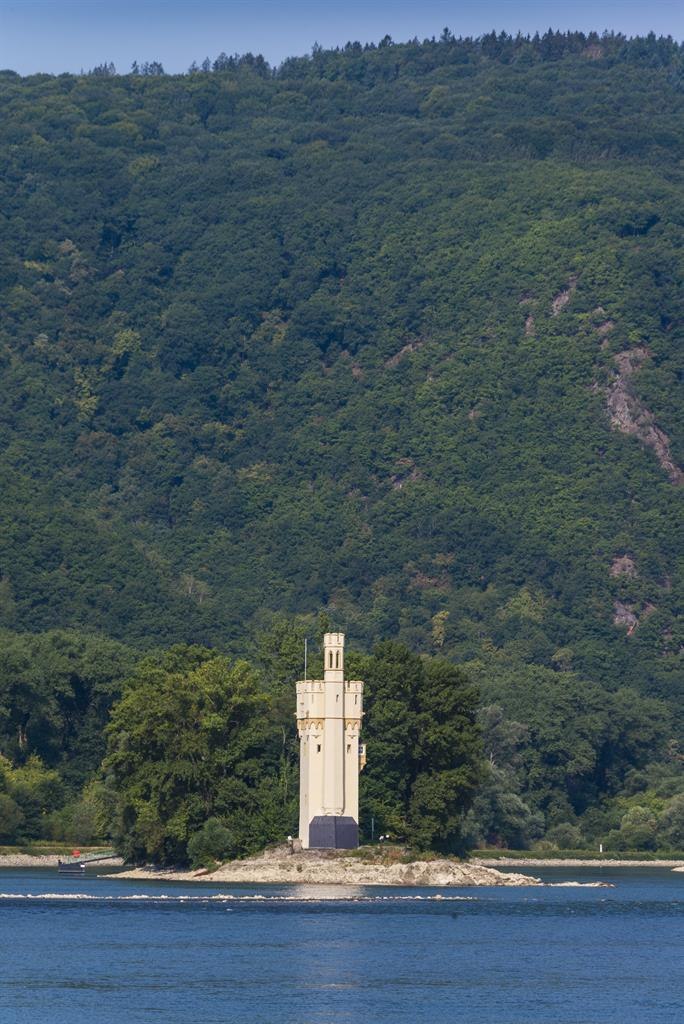 Mäuseturm De Mäuseturm bij het Binger Loch bevindt zich op een ontoegankelijk eiland en is naast de burcht Pfalzgrafenstein de enige verdedigings- en wachttoren die midden in de Rijn is gelegen. De toren vormt samen met Burg Ehrenfels een tolplaats. Volgens de sage zou in de 10e eeuw de bouwer van de toren, aartsbisschop Hatto I van Mainz, de armen toegang tot zijn graanpakhuizen hebben ontzegd, waarna hij hen in de schuur verbrandde en als "korenmuizen" bespotte - vervolgens zou hij door duizenden muizen levend zijn opgegeten. De Mäuseturm werd inderdaad door de aartsbisschoppen van Mainz gebouwd, maar pas tussen 1298 en 1371. De huidige toren in neogotische stijl stamt uit de 19e eeuw. Het voormalige terrein van de Landesgartenschau met uitzicht op de Mäuseturm biedt een ruim cultureel aanbod aan de Rijnoever - een podium, ontmoetingscentrum, speeltuin, Open Air-podium, park, museum, galerie en gelegenheid om van een wijntje te genieten. Mäuseturm 55411 Bingen Tel. +49 (0)6721 - 184205-206 www.bingen.de
