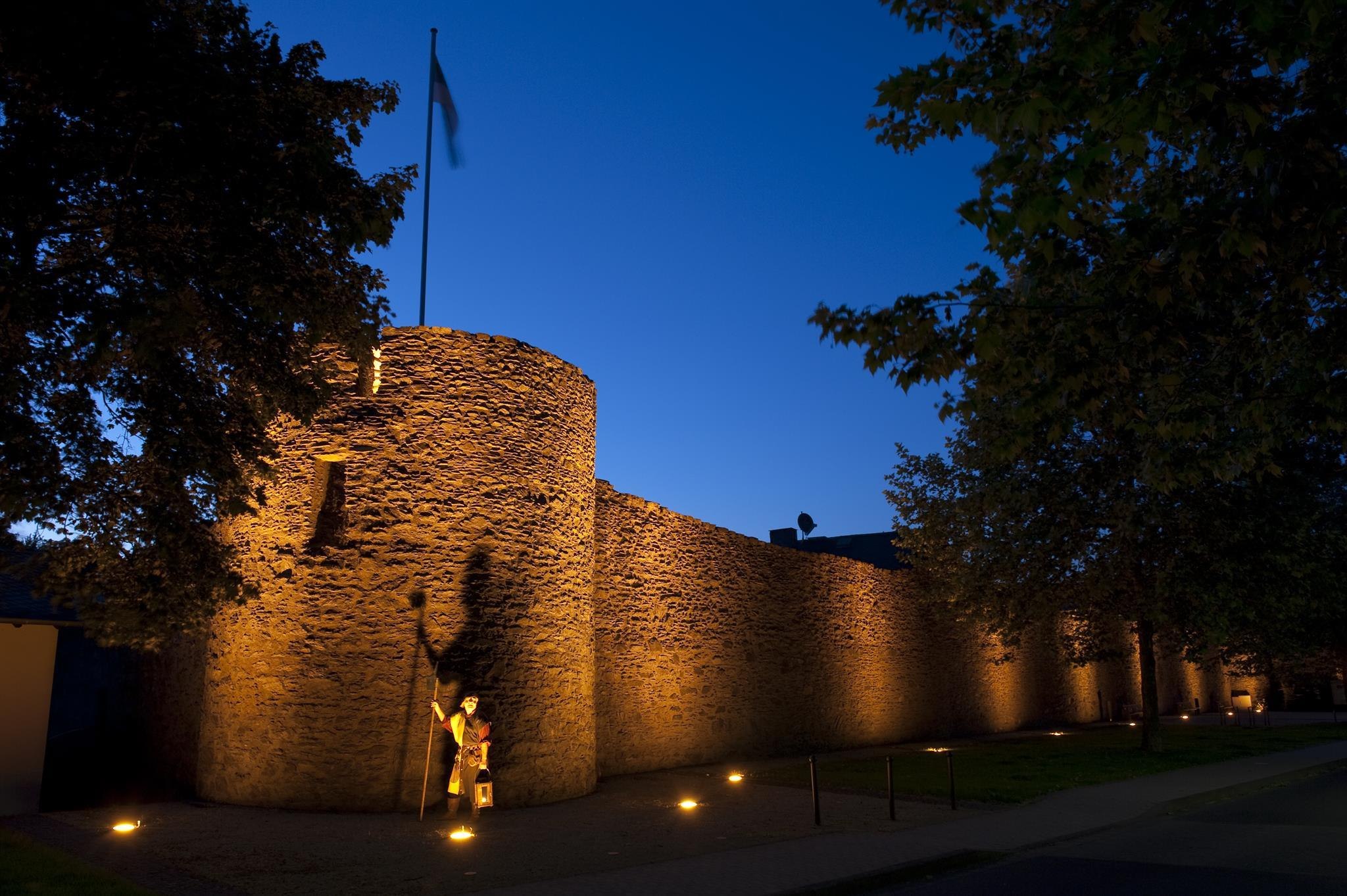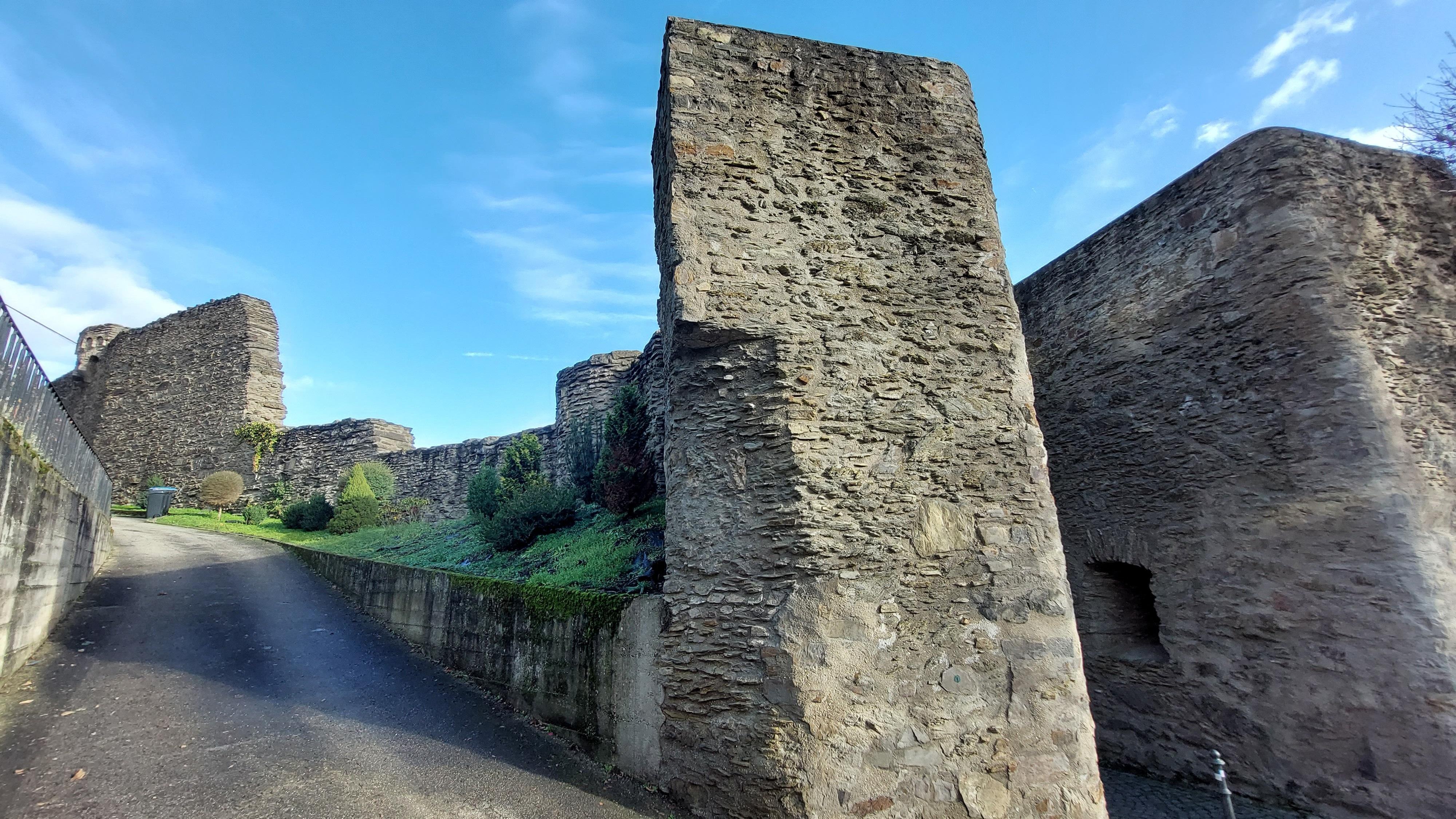In 1396 werd met de bouw van de stadsmuur begonnen; in 1424 was het werk voltooid. De stadsmuur met de 5 poorten (kerkpoort, veepoort, Koblenzpoort, Joseftpoort en Rijnpoort) is voor een aanzienlijk deel nog bewaard gebleven. Het meest prominente deel van de stadsmuur is de "Scharfe Turm" aan de Rijn. Ooit diende het als uitkijk- en douanetoren, later was het een gevangenis en martelkamer.