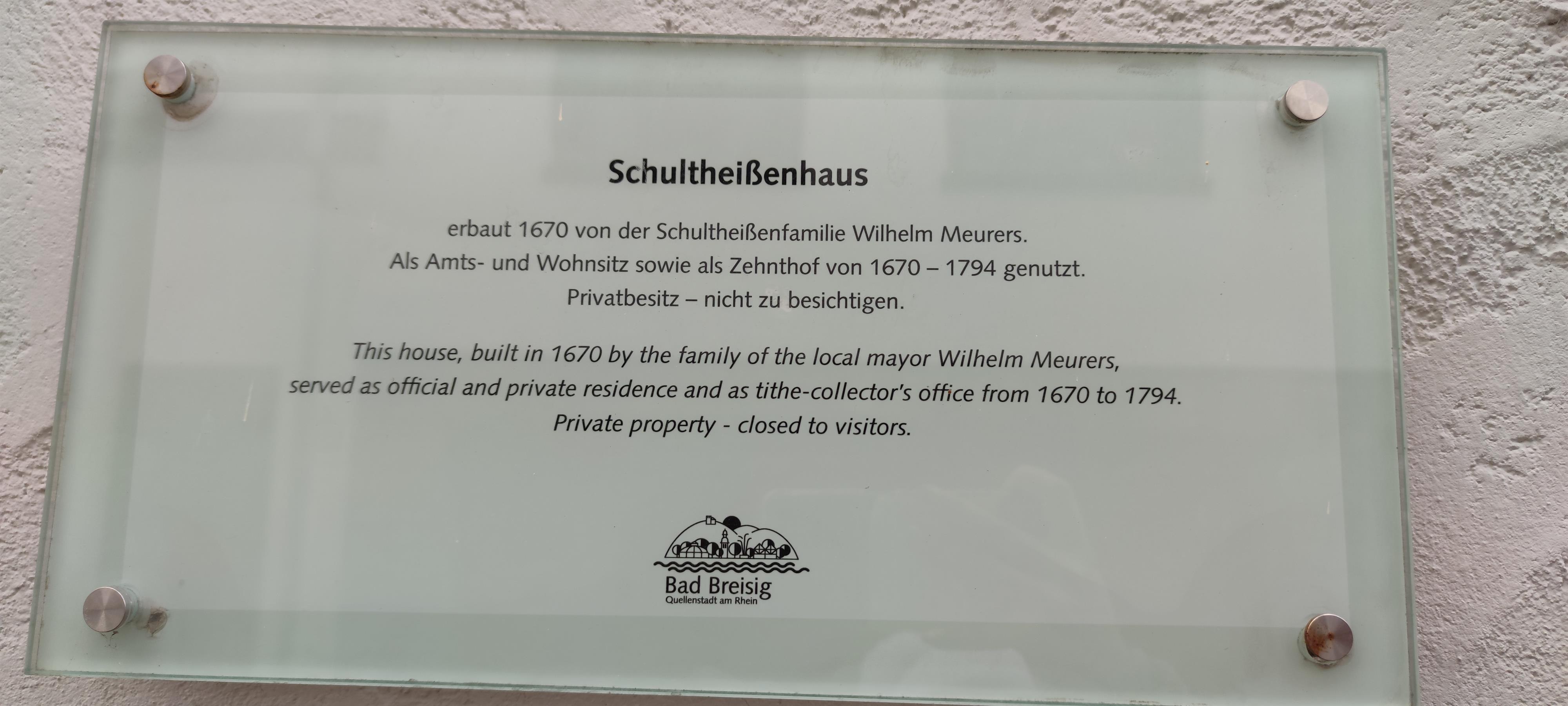 Dit is een drie verdiepingen tellend, gepleisterd natuurstenen gebouw met een trapgevel. Het huis aan de Biergasse 28 werd in 1670 gebouwd door de familie van Meurers, die als schultheiß diende, als woon- en ambtswoning. De familie was van 1588 tot 1794 actief in de schultheißdienst, wat overeenkomt met de functie van de huidige burgemeester. De initialen W.M-, voor Wilhelm Meurers, zijn in de zijkanten van de raamroosters ingebouwd. Het vier gesmede cijfers op de gevel van het huis tonen het bouwjaar 1670. Tegenwoordig is het huis in particulier bezit.