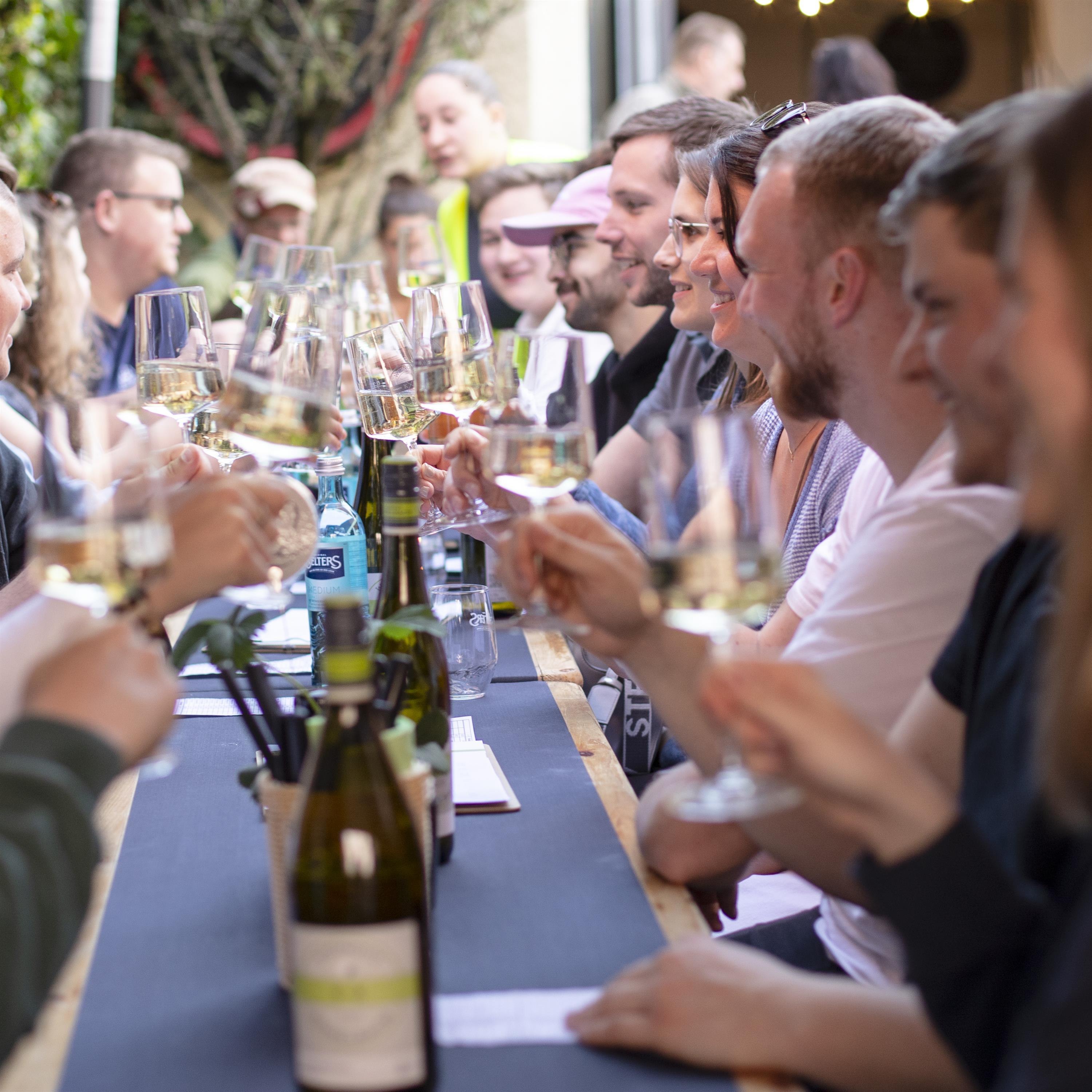 Typische Rheingauer Straußwirtschaft of ook wel "Heckewirtschaft" genoemd in de pershal en op het landgoed. Kleine regionale gerechten van de vleesworst tot het veganistische linzengerecht, daarbij Riesling en Spätburgunderwijnen uit eigen productie.