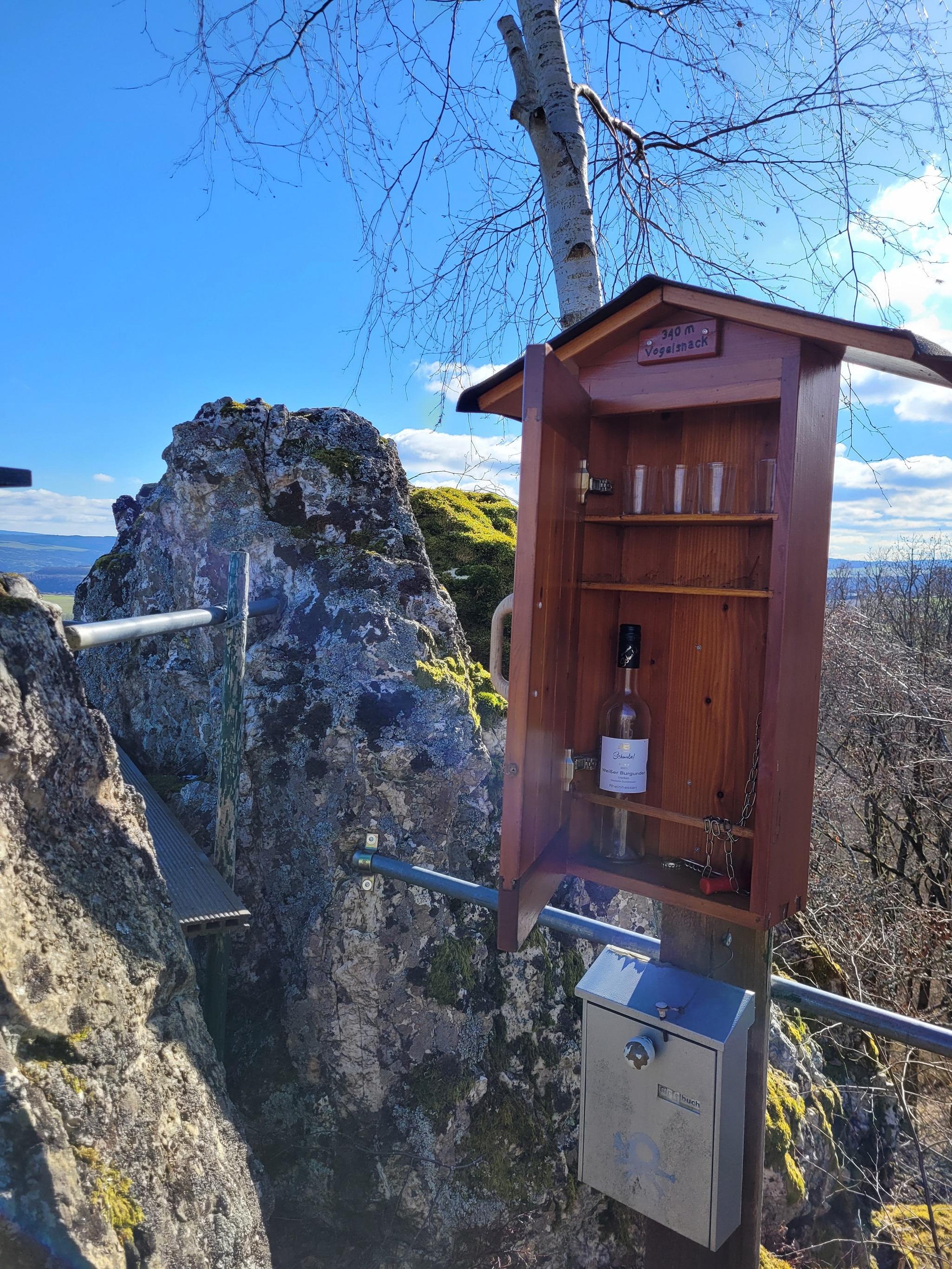 Imposante rots met wijnkast met uitzicht op Niederburg en Damscheid.